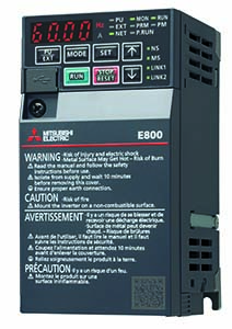 The FR-E800 Series variable frequency drive is built upon Mitsubishi Electric’s proven variable speed control technology throughout years of reliable operation across various constant and variable torque applications. Designed to save energy and minimize cost, the FR-E800 brings together advances in quality, performance, and predictive maintenance capabilities in one multi-purpose inverter.