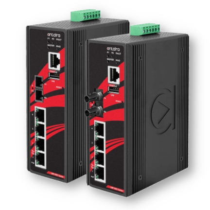 Tek-Matic offers a variety of industrial Power over Ethernet switches that reliably deliver both power and network connectivity in adverse weather and environmental conditions. Enjoy a streamlined communication infrastructure by simplifying wiring setups and reducing the amount of devices needed. Our industrial PoE switches encompass a technology that utilizes an RJ- 45 copper port to support connections up to 100 meters and speeds up to 10mbps, 100mbps, and 1,000mbps over a single twisted pair Ethernet cable. Tek-Matic’s industrial PoE switches meet IEEE standards 802.3af (PoE) and 802.3at(PoE+).